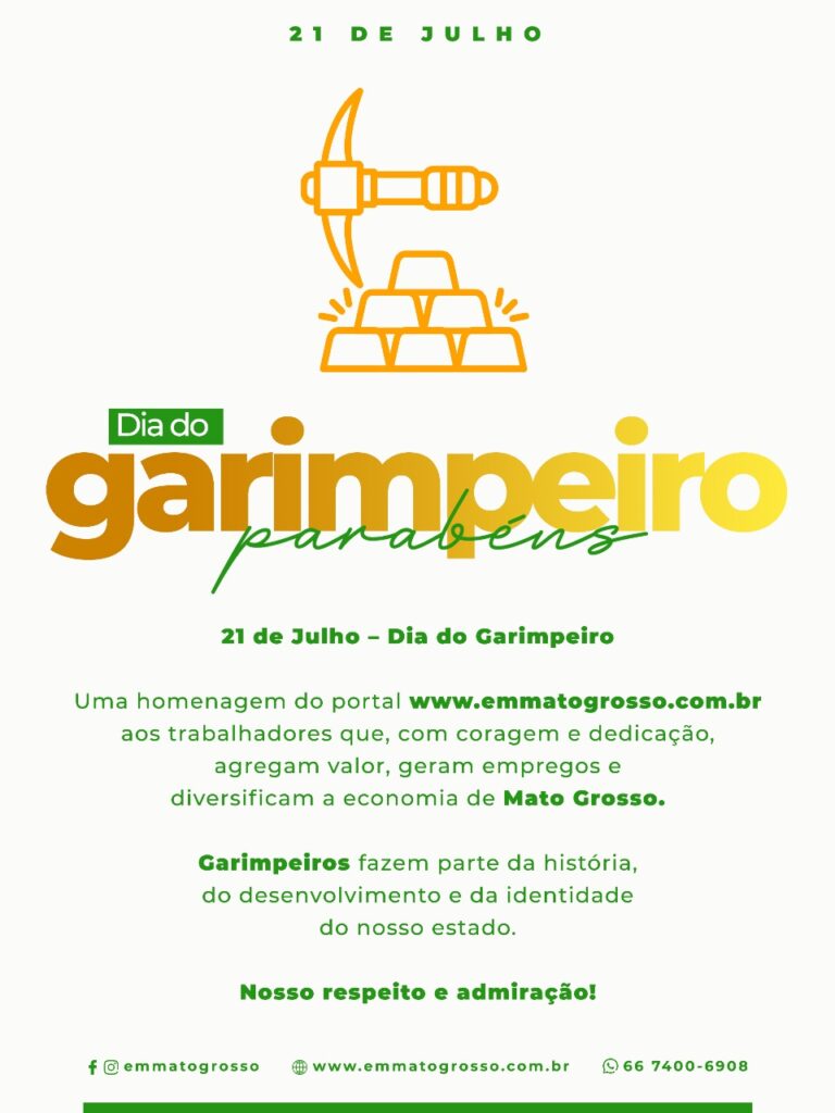 Neste 21 de julho, data em que se comemora o Dia do Garimpeiro, o portal www.emmatogrosso.com.br presta uma homenagem especial a todos os trabalhadores do garimpo que, com coragem, dedicação e esforço diário, contribuem para o desenvolvimento econômico e social de Mato Grosso.