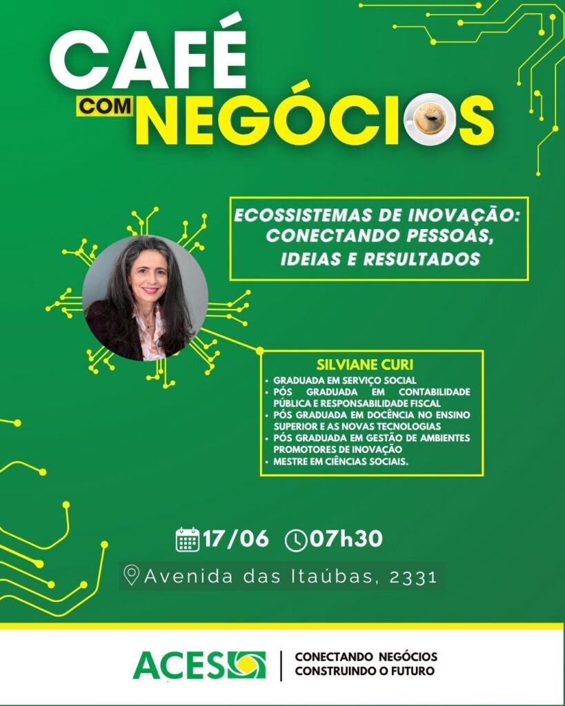 O evento acontece às 7h30, na sede da ACES, localizada na Avenida das Itaúbas, nº 2331. A proposta é reunir empresários, empreendedores, gestores públicos e profissionais de diferentes segmentos para uma manhã de networking, troca de experiências e aprendizado sobre inovação e transformação de ambientes de negócios.