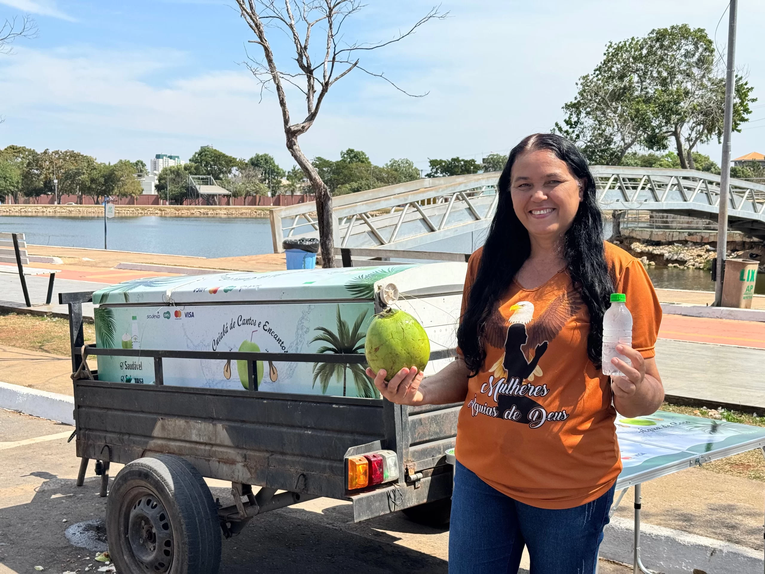 Desenvolve MT apoia empreendedora e transforma venda de água de coco no Parque tia Nair em Cuiabá