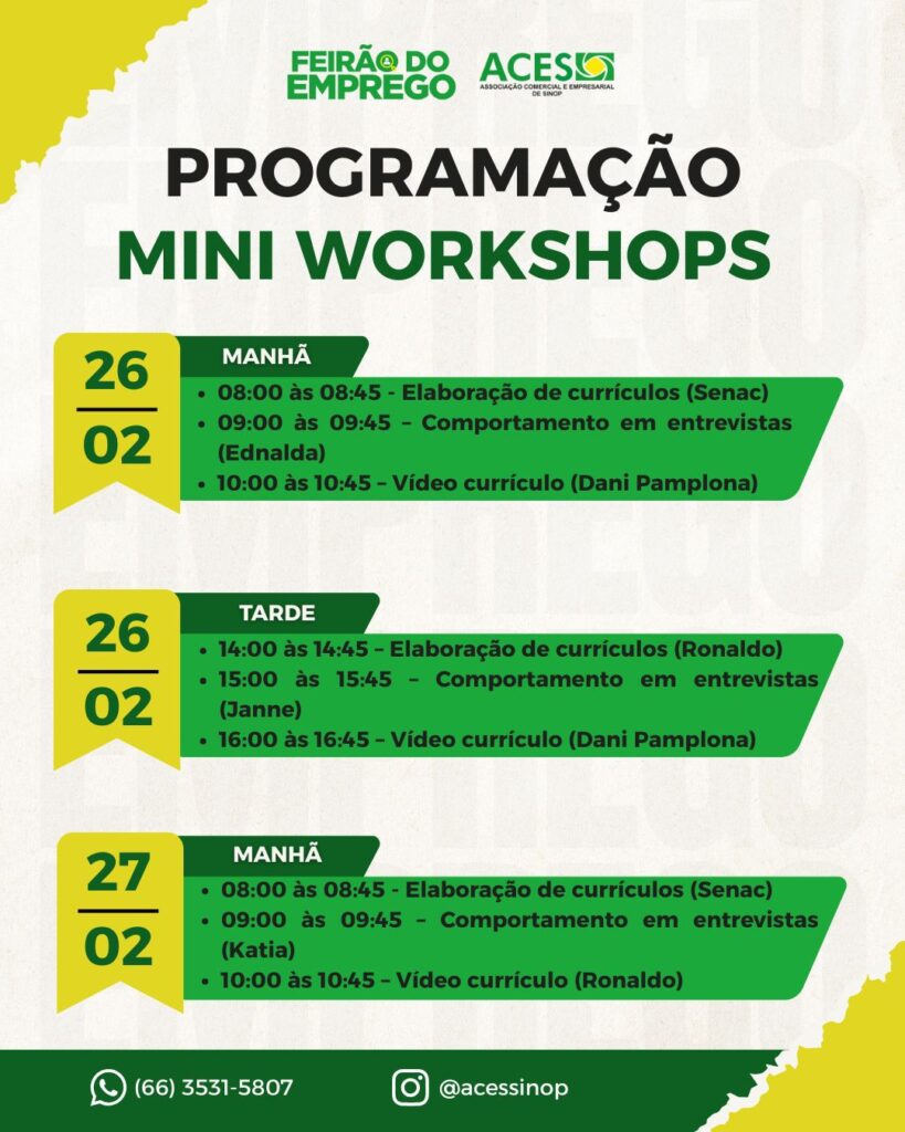 De acordo com o presidente da ACES, Fabio Migliorini, o feirão nasce de uma necessidade real do setor produtivo. “Sinop vive um momento de crescimento constante. Temos empresas expandindo, novas operações chegando e uma demanda ativa por contratação. O Feirão do Emprego é uma ação prática da Associação Comercial para aproximar quem precisa contratar de quem precisa trabalhar, facilitando esse encontro e movimentando a economia local.”