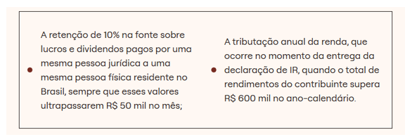 Para lucros e dividendos recebidos por contribuintes de alta renda, foi instituído o redutor da tributação mínima do IRPF.