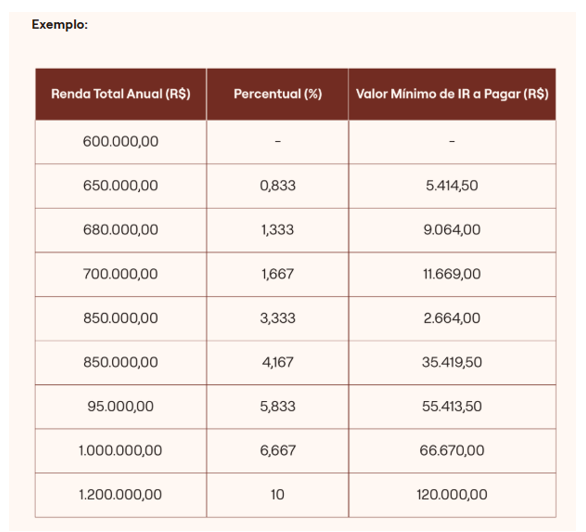 O objetivo é assegurar que pessoas físicas com renda anual superior a R$ 600.000 estejam sujeitas a uma alíquota efetiva mínima de até 10%, independentemente da origem dos rendimentos.